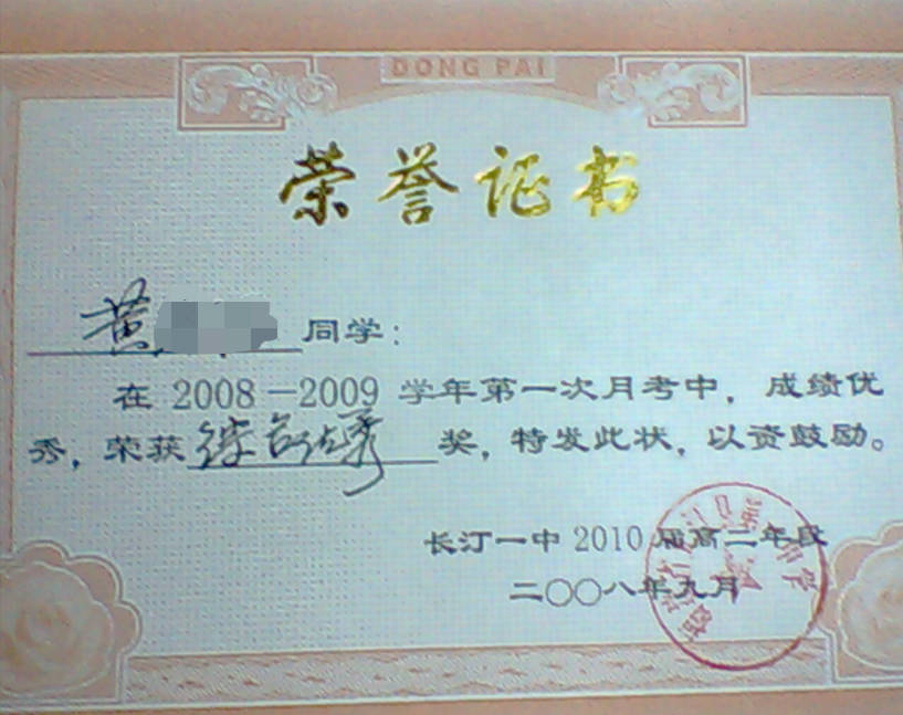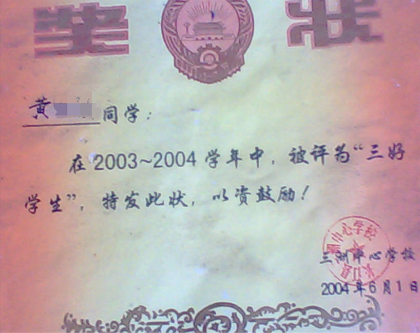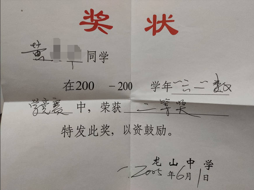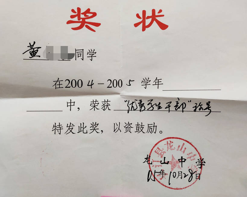 - 2004-11《成绩优秀奖》——龙山七年级