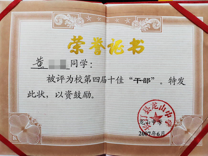- 2007-06《第四届十佳干部》——龙山中学