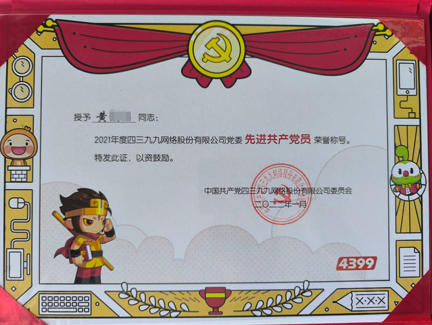 - 2022-01《2021年度先进共产党员》——中共四三九九网络股份有限公司党委
