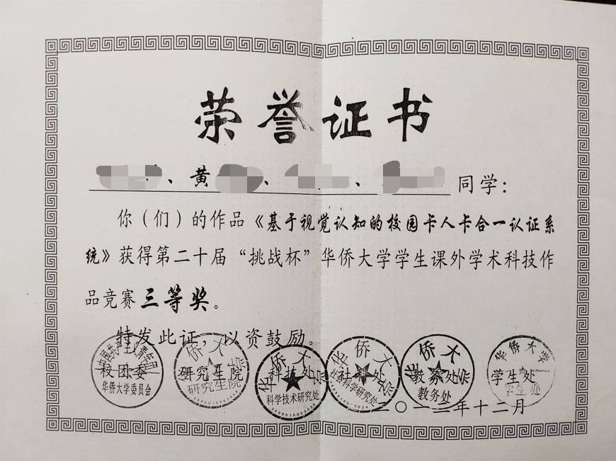 - 2012-12《第二十届“挑战杯”华侨大学学生课外学术科技作品竞赛三等奖》——华侨大学六处