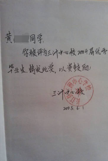 - 2005-06《优秀毕业生》——三洲中心小学