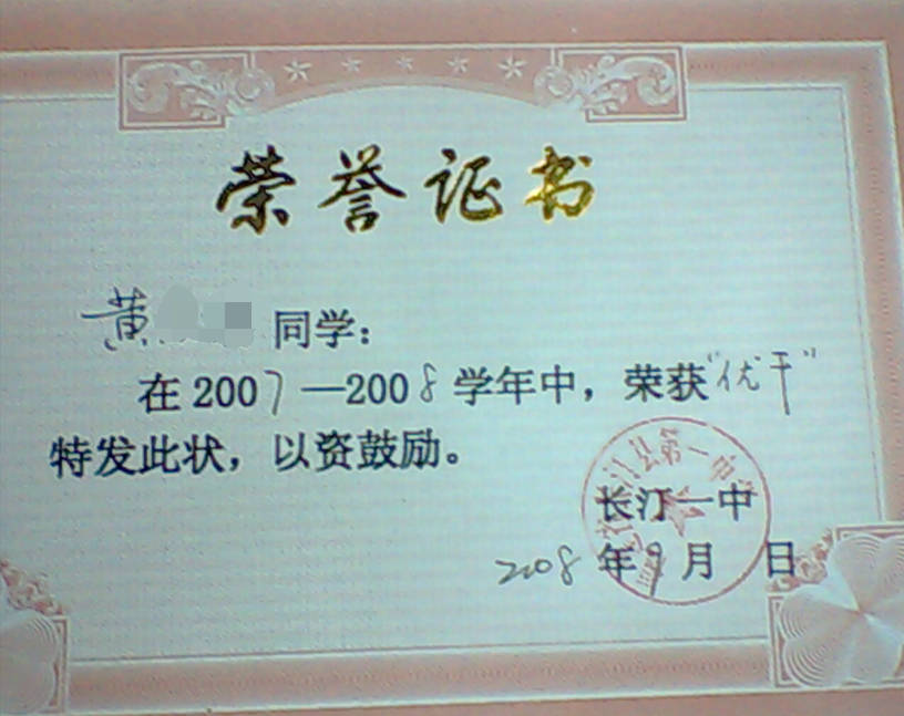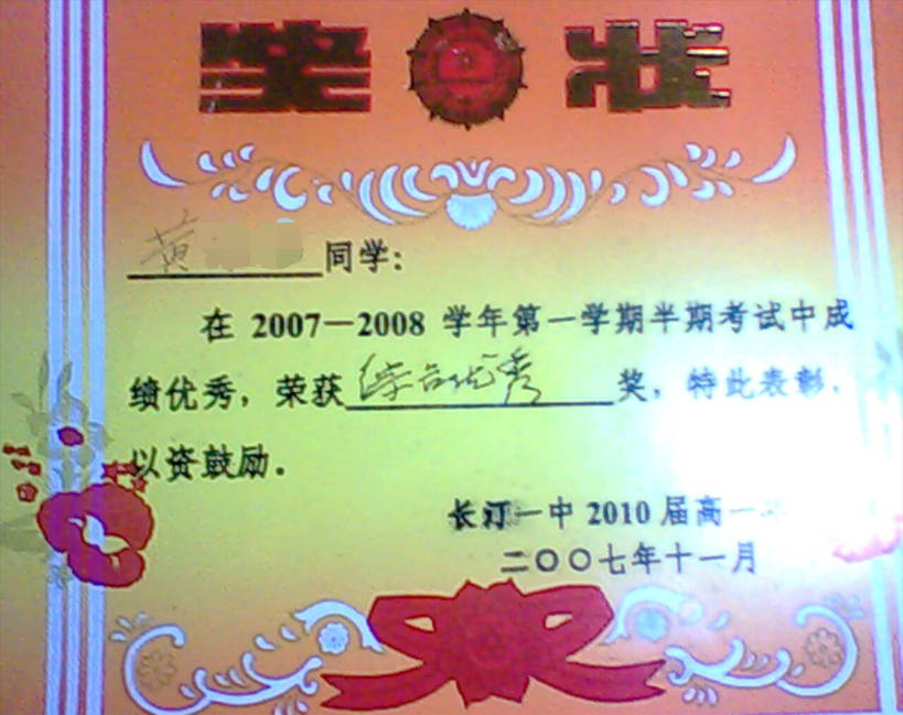 - 2007-11《成绩综合优秀奖》——长汀一中