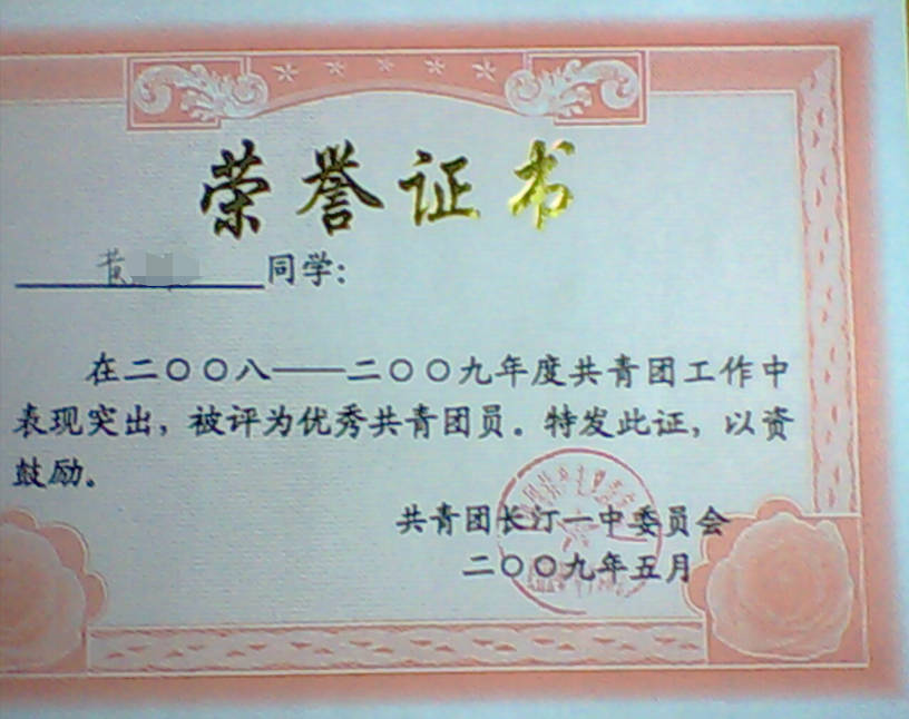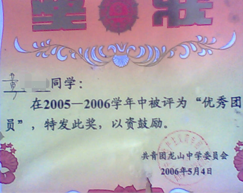 - 2006-05《优秀团员》——共青团龙山中学委员会