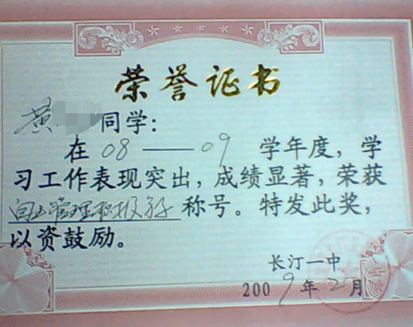 - 2008-09《成绩综合优秀奖》——长汀一中