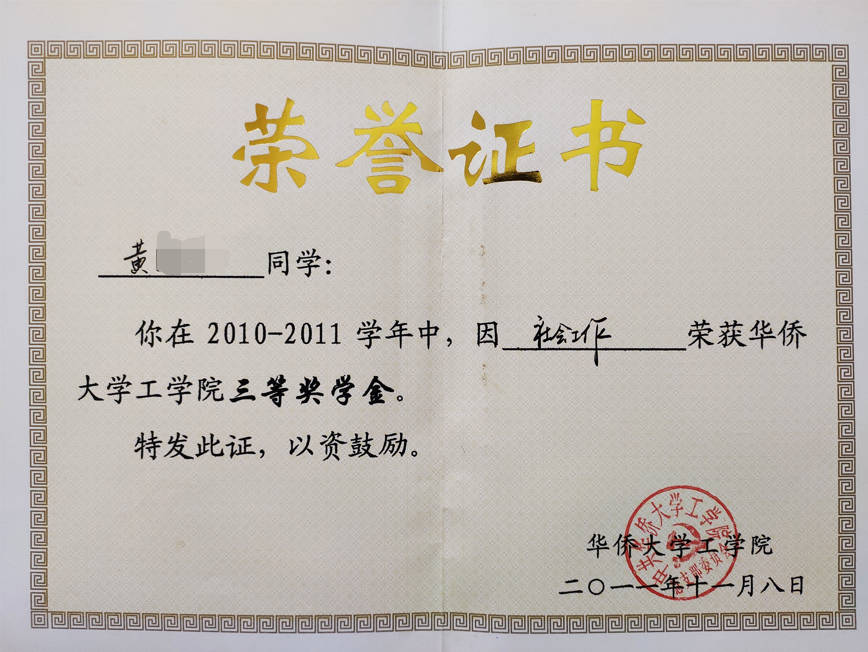 - 2011-11《三等奖学金》——华侨大学工学院